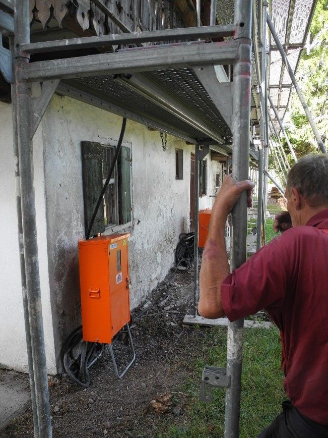 Im Mai 2018 fand ein erster Ortstermin mit der DSD (Deutsche Stiftung Denkmalschutz) statt, bei der das weitere Vorgehen besprochen wurde. Die Stiftung hat 50.000 € für die Teilbaumaßnahme „Dachsanierung“ bereitgestellt. In den kommenden Wochen wurden dann die Leistungsverzeichnisse (Gerüstbauarbeiten, Rückbauarbeiten, Zimmererarbeiten, Dachdecker- und Spenglerarbeiten) und Vergabeunterlagen von Architekt Michael Holzer und Vereinsvorstand Max Leutenbauer gefertigt und versandt.