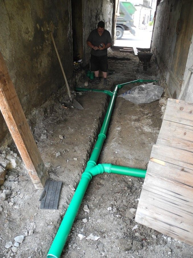 Im Juli und August 2018 wurden dann die Bodenplatten im Stall und in der Tennendurchfahrt betoniert. Für die fachmännische Ausführung sorgte Klaus Eberl.