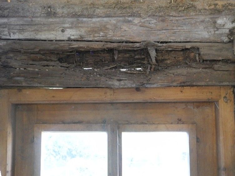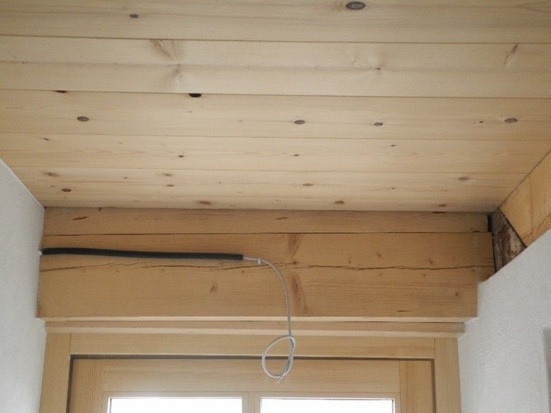 Decke: Anobienbefall; Querriss an Deckenbalken