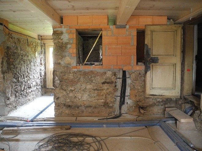 Rohbauarbeiten wie Herstellen erforderlicher Durchbrüche, Abbruch instabiler Mauerpartien und Neuerrichtung incl. Fundament-Arbeiten.