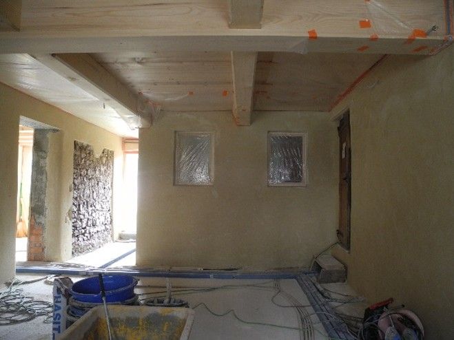 Herstellen des Zementestrichs nach Verlegen der Fußbodenheizleitungen durch Fa. Bernd Förster.